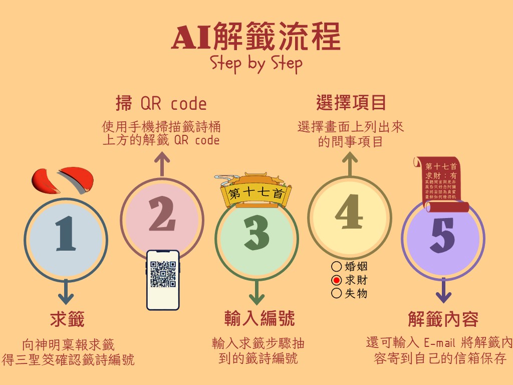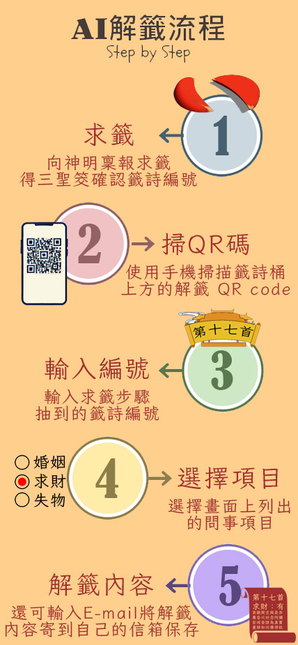 輕鬆擁有專業解籤老師⸺請AI幫信眾解籤 現代宮廟解籤新選擇!透過我們的 AI 解籤服務,解決人力短缺困擾,不再需要聘請專職解籤老師。信眾只需使用手機,即可快速獲得籤詩解析,簡單又方便。更棒的是,只需合理預算即可使用此服務,助 貴宮廟提升解籤體驗! 現在就和我們聯絡,了解 AI 解籤服務的內容。